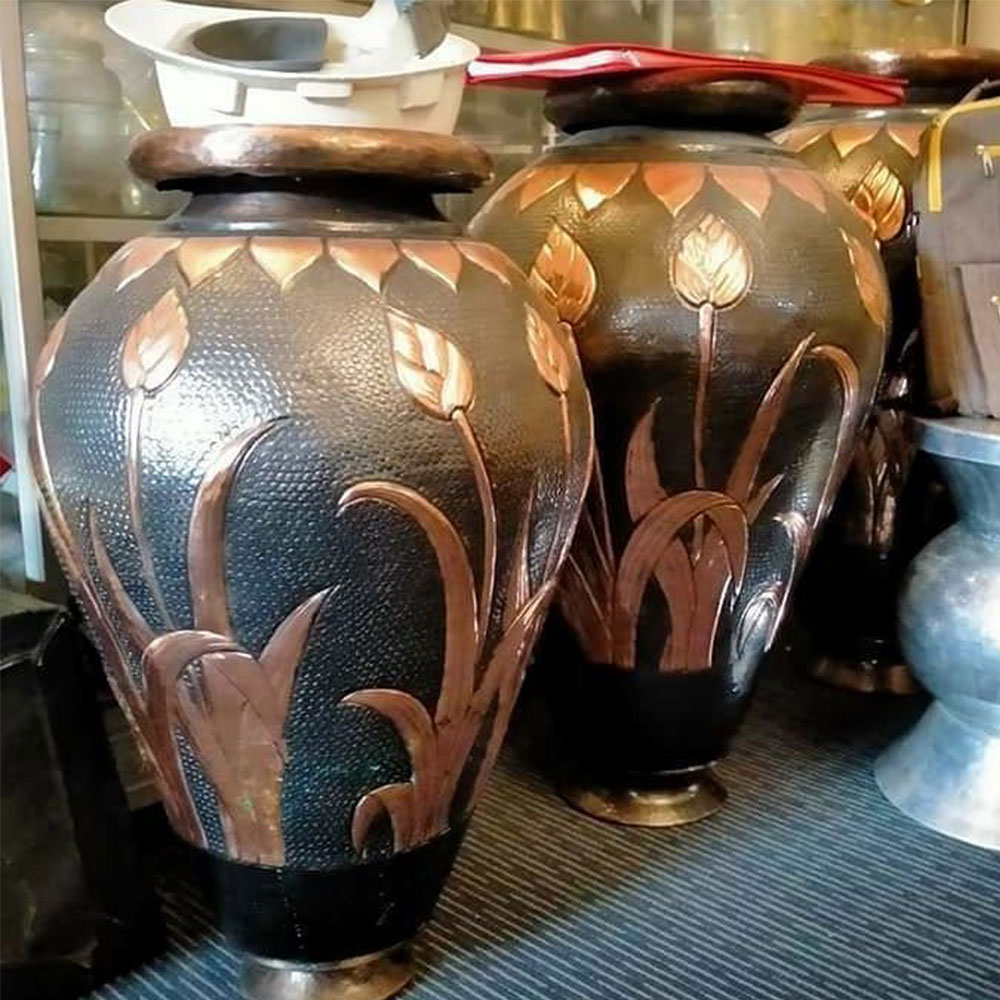 Setiap Guci dari pengrajin Edysalogam adalah karya seni yang autentik dan berkualitas tinggi. Setiap guci diproduksi dengan tangan-tangan terampil yang menghasilkan produk yang indah dan tak tertandingi. Pengrajin kami mengutamakan detail dan kehalusan dengan sangat baik. Setiap lekukan, sayatan, dan ornamen pada guci ini dipahat dengan teliti untuk menciptakan bentuk yang mewah dan indah. Dengan kerajinan yang presisi ini, guci-guci ini akan menjadi pusat perhatian dan pembicaraan di ruangan mana pun.