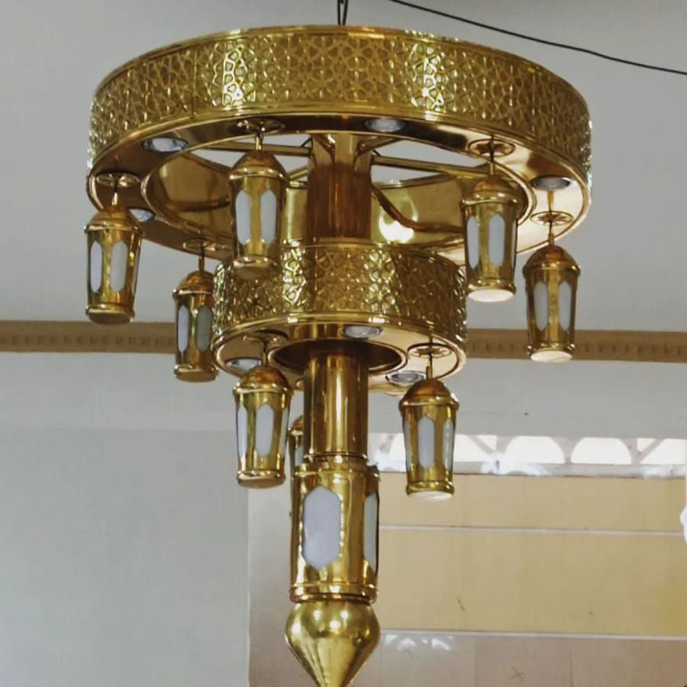 Setiap lampu gantung masjid kuningan dan tembaga dari Edysalogam Boyolali memancarkan cahaya nan indah, memberikan nuansa spiritual dalam ruang ibadah. Desainnya menampilkan kecemerlangan keindahan seni tradisional yang mempesona. Dengan rancangan yang elegan, setiap lampu gantung ini memberikan sentuhan kemewahan dan kemuliaan dalam arsitektur masjid. Ketelitian dalam detail-detai seperti motif, ukiran, dan warna-warna kuningan dan tembaga yang cemerlang menjadi ciri khas yang mengagumkan.